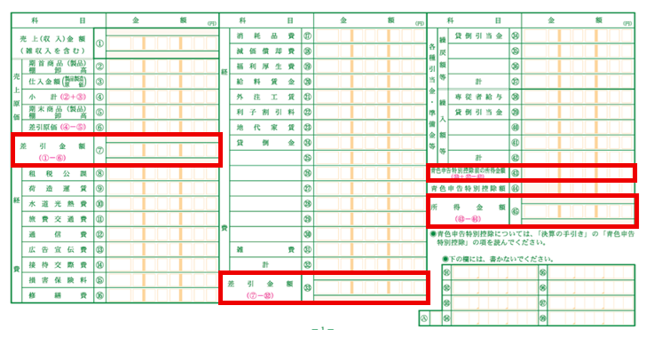 (1) 売上金額-売上原価=差引金額⑦(≒売上総利益)